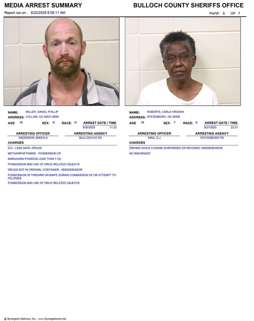 These records are matters of public information provided by the Bulloch County Sheriff’s Office. Booking reports are details of arrests only. All persons below are considered to be innocent unless proven otherwise in a court of law.