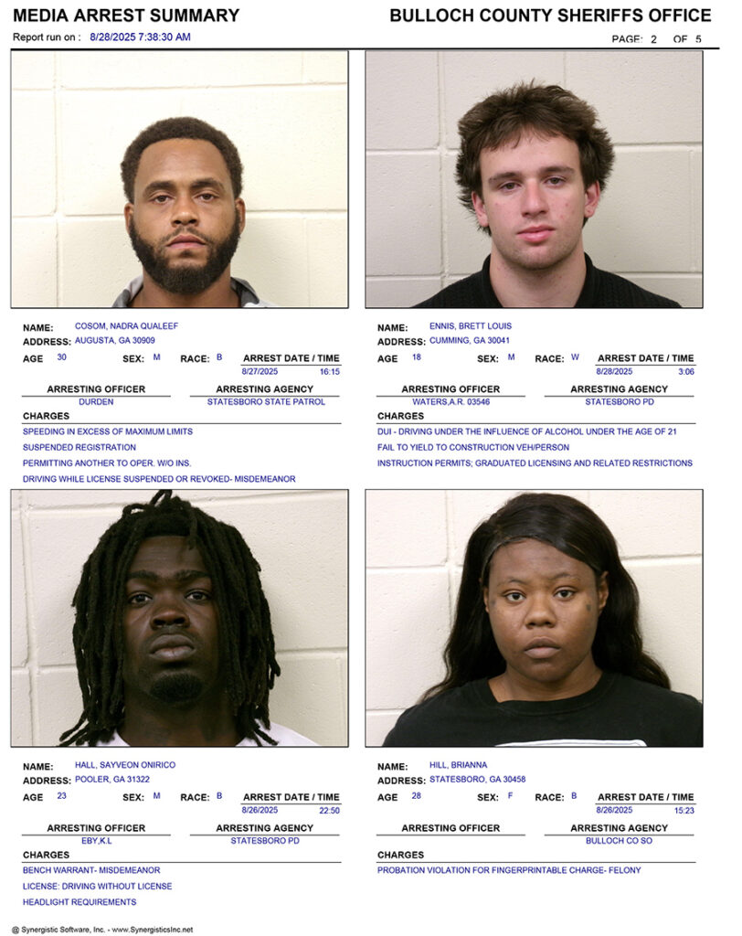 These records are matters of public information provided by the Bulloch County Sheriff’s Office. Booking reports are details of arrests only. All persons below are considered to be innocent unless proven otherwise in a court of law.