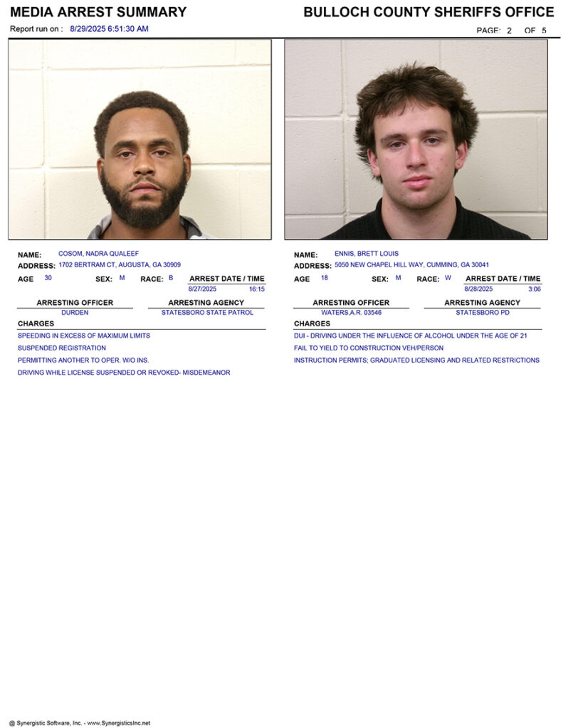 These records are matters of public information provided by the Bulloch County Sheriff’s Office. Booking reports are details of arrests only. All persons below are considered to be innocent unless proven otherwise in a court of law.