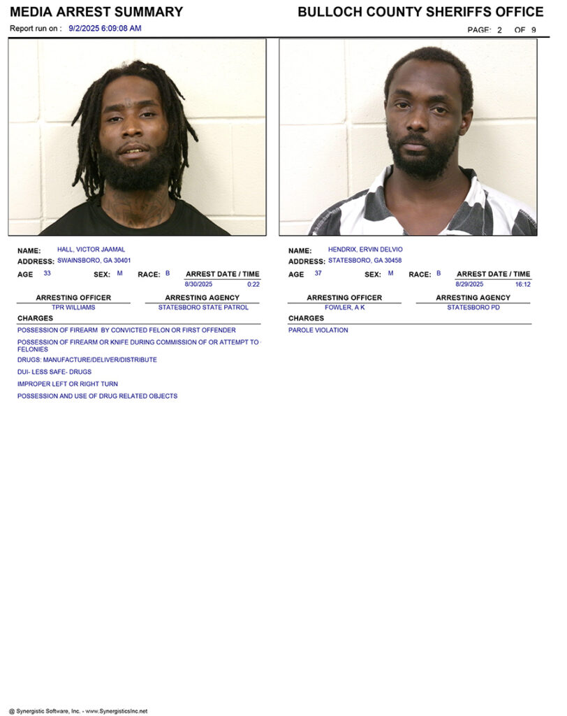 9/02/2025 Booking Report for Bulloch County