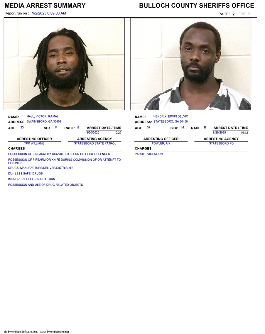 These records are matters of public information provided by the Bulloch County Sheriff’s Office. Booking reports are details of arrests only. All persons below are considered to be innocent unless proven otherwise in a court of law.