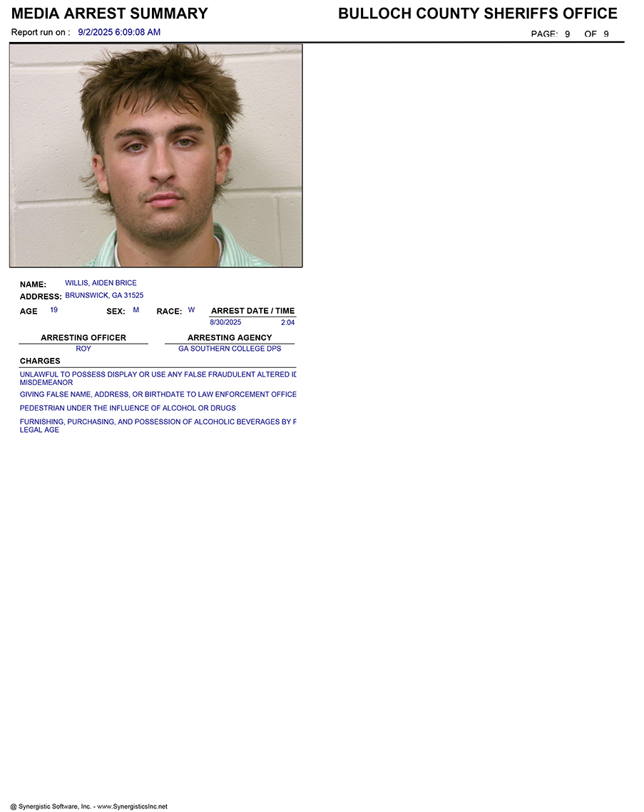 These records are matters of public information provided by the Bulloch County Sheriff’s Office. Booking reports are details of arrests only. All persons below are considered to be innocent unless proven otherwise in a court of law.