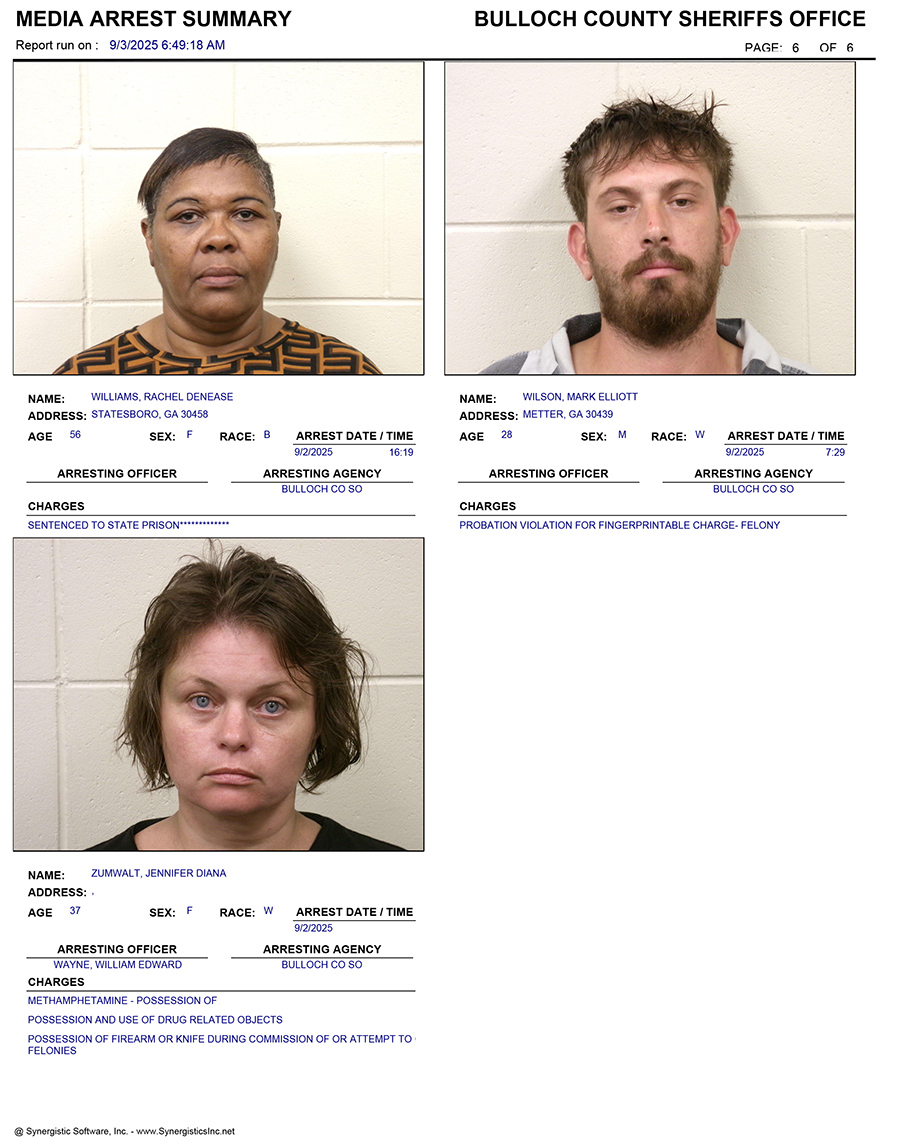 These records are matters of public information provided by the Bulloch County Sheriff’s Office. Booking reports are details of arrests only. All persons below are considered to be innocent unless proven otherwise in a court of law.