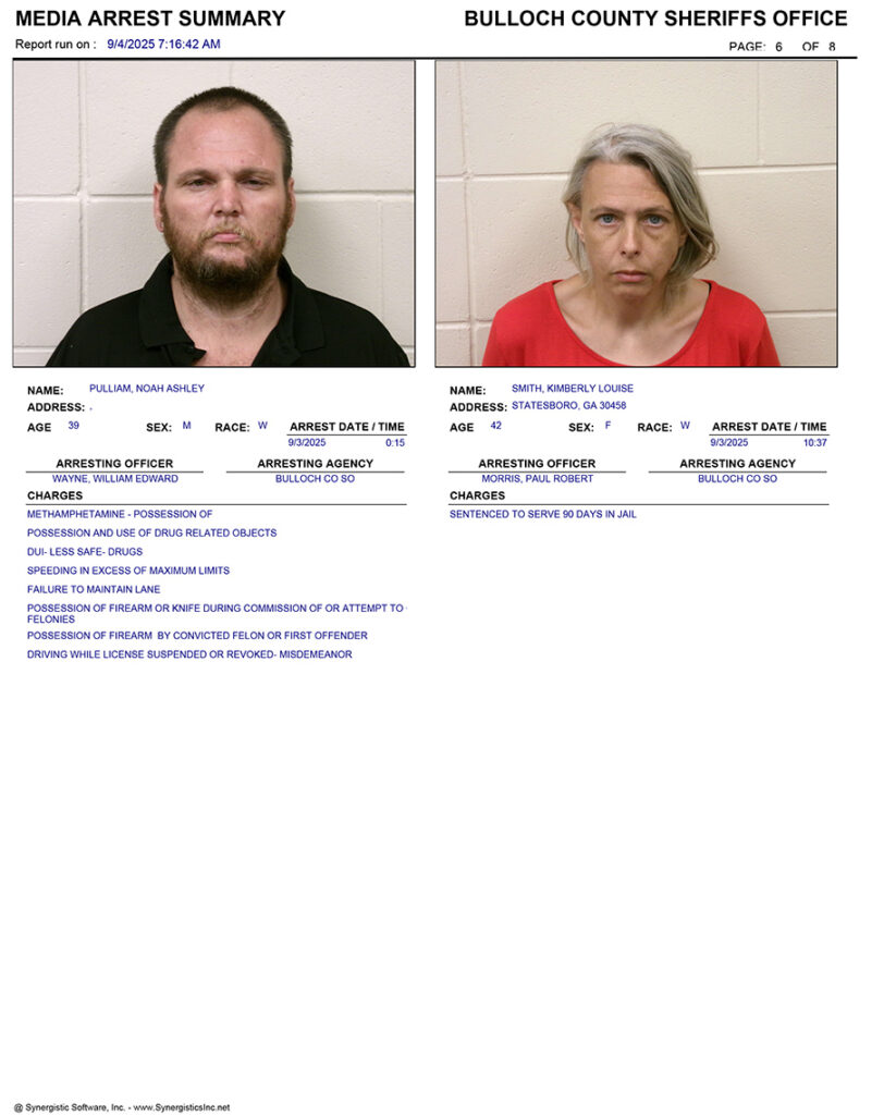 These records are matters of public information provided by the Bulloch County Sheriff’s Office. Booking reports are details of arrests only. All persons below are considered to be innocent unless proven otherwise in a court of law.