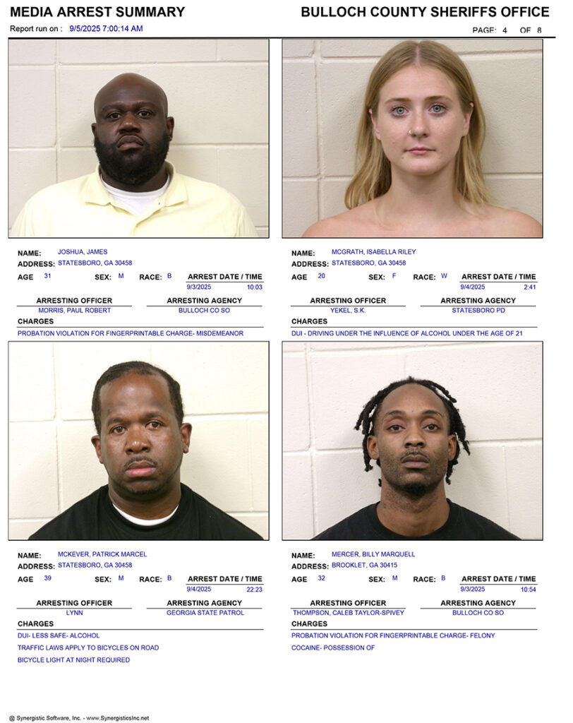 These records are matters of public information provided by the Bulloch County Sheriff’s Office. Booking reports are details of arrests only. All persons below are considered to be innocent unless proven otherwise in a court of law.