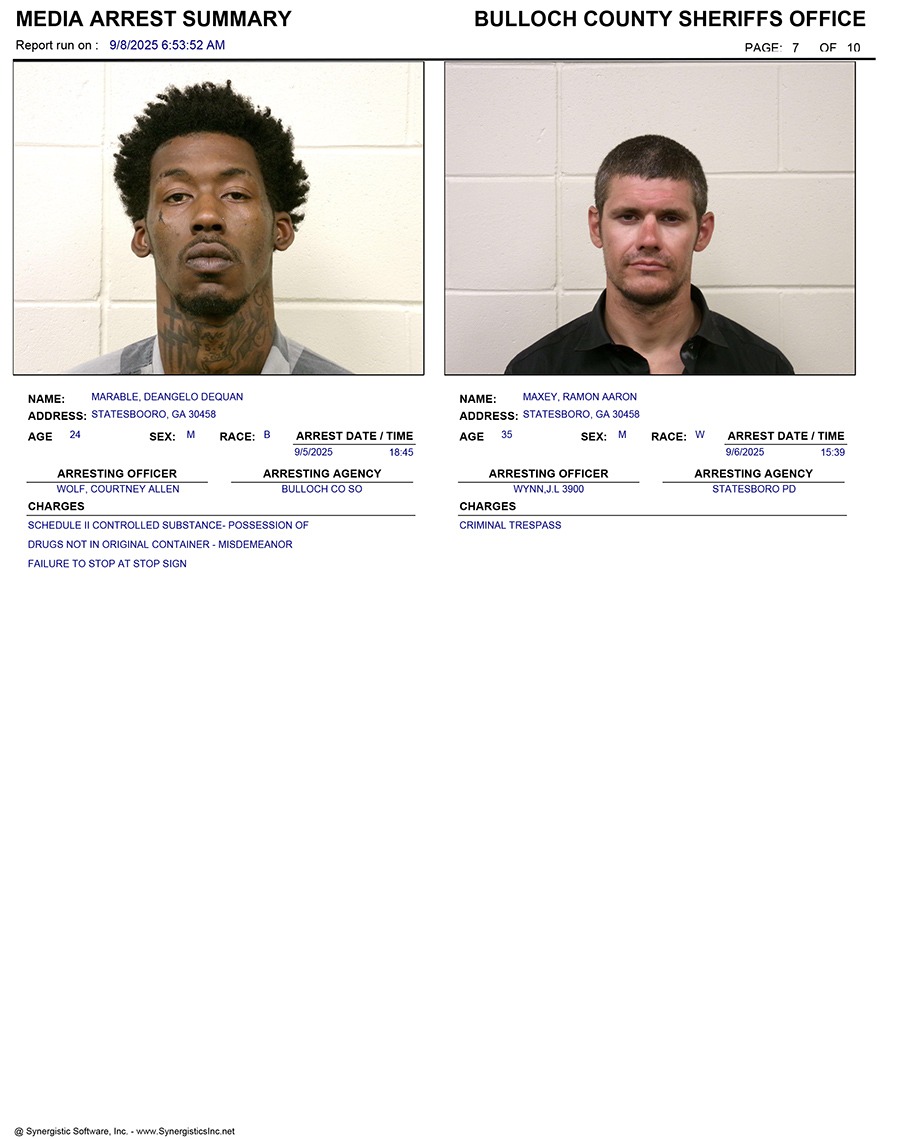 These records are matters of public information provided by the Bulloch County Sheriff’s Office. Booking reports are details of arrests only. All persons below are considered to be innocent unless proven otherwise in a court of law.
