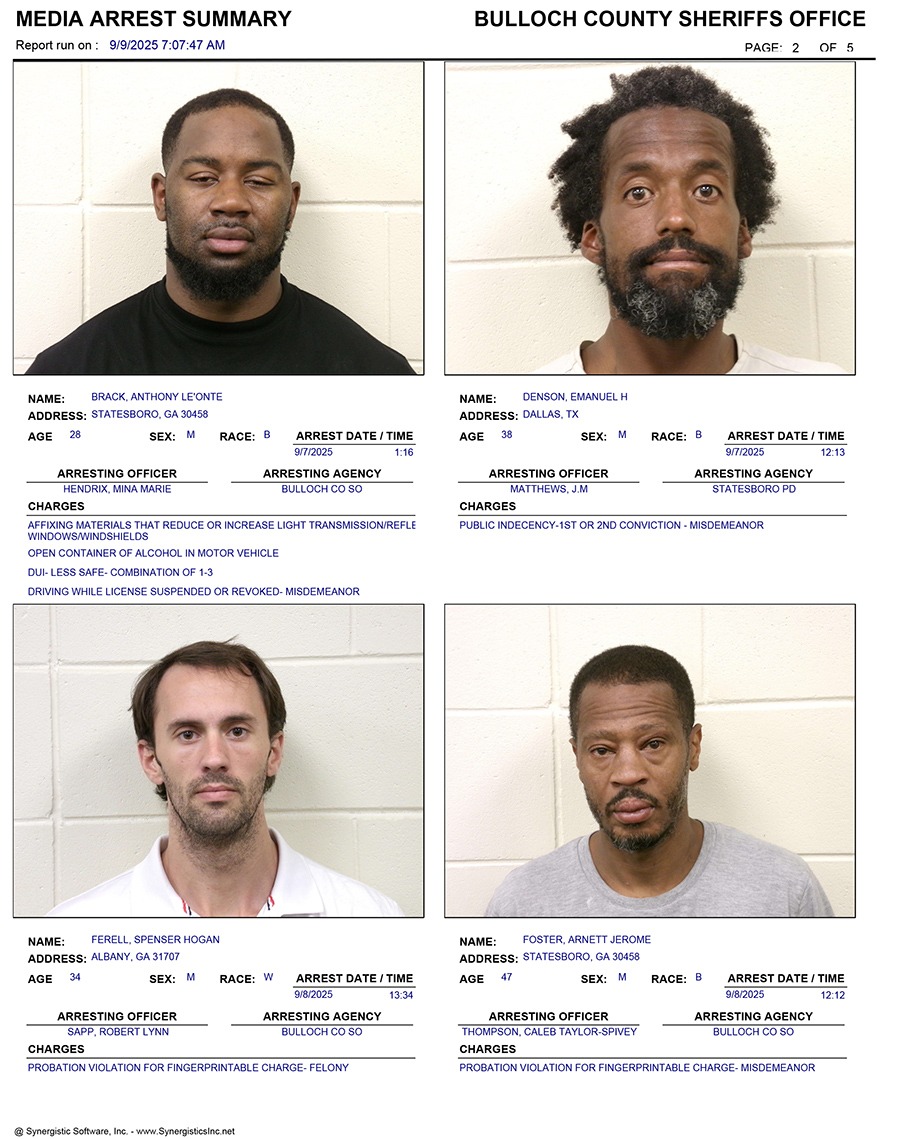 These records are matters of public information provided by the Bulloch County Sheriff’s Office. Booking reports are details of arrests only. All persons below are considered to be innocent unless proven otherwise in a court of law.