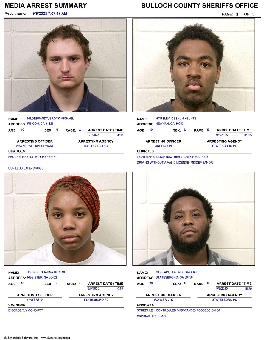 These records are matters of public information provided by the Bulloch County Sheriff’s Office. Booking reports are details of arrests only. All persons below are considered to be innocent unless proven otherwise in a court of law.