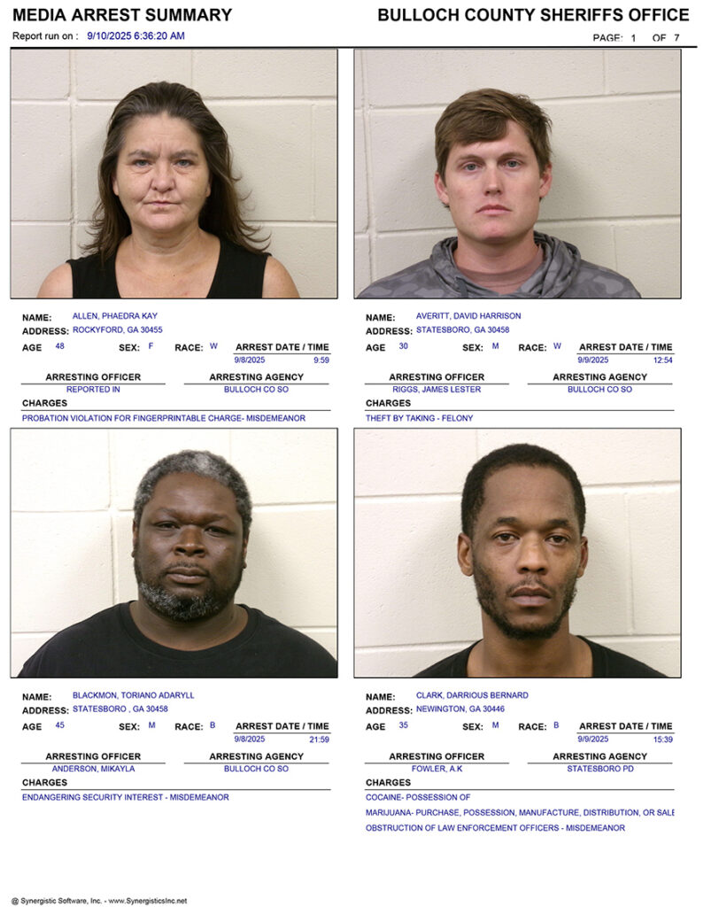 These records are matters of public information provided by the Bulloch County Sheriff’s Office. Booking reports are details of arrests only. All persons below are considered to be innocent unless proven otherwise in a court of law.