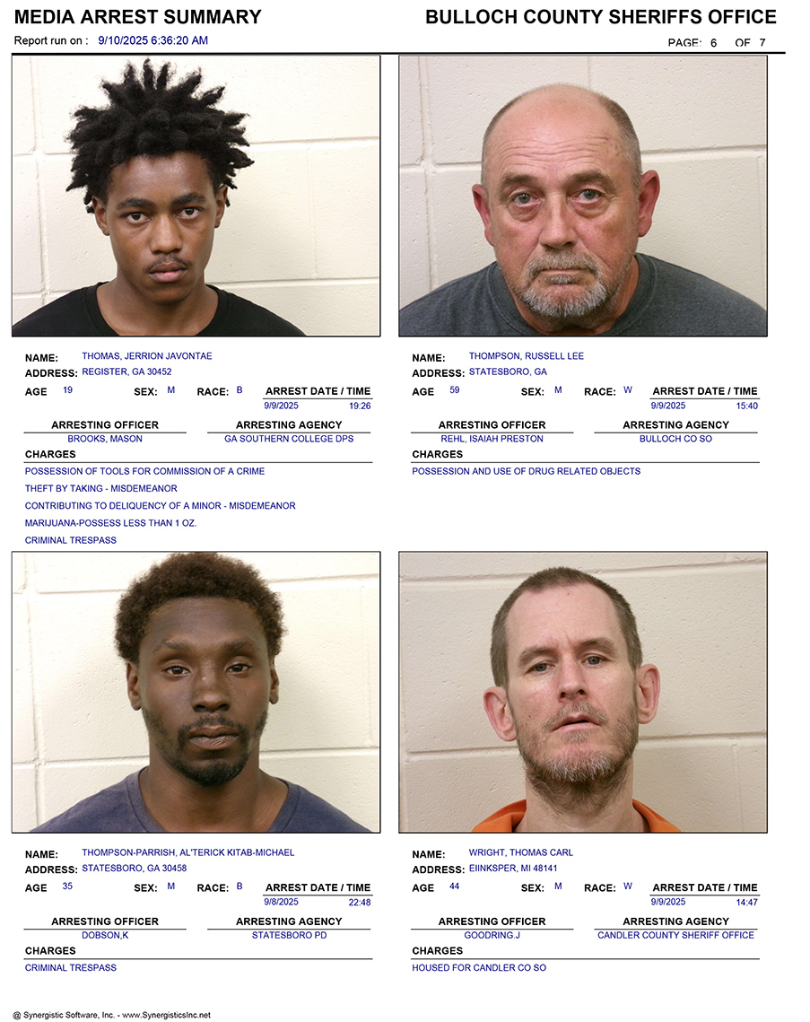 These records are matters of public information provided by the Bulloch County Sheriff’s Office. Booking reports are details of arrests only. All persons below are considered to be innocent unless proven otherwise in a court of law.