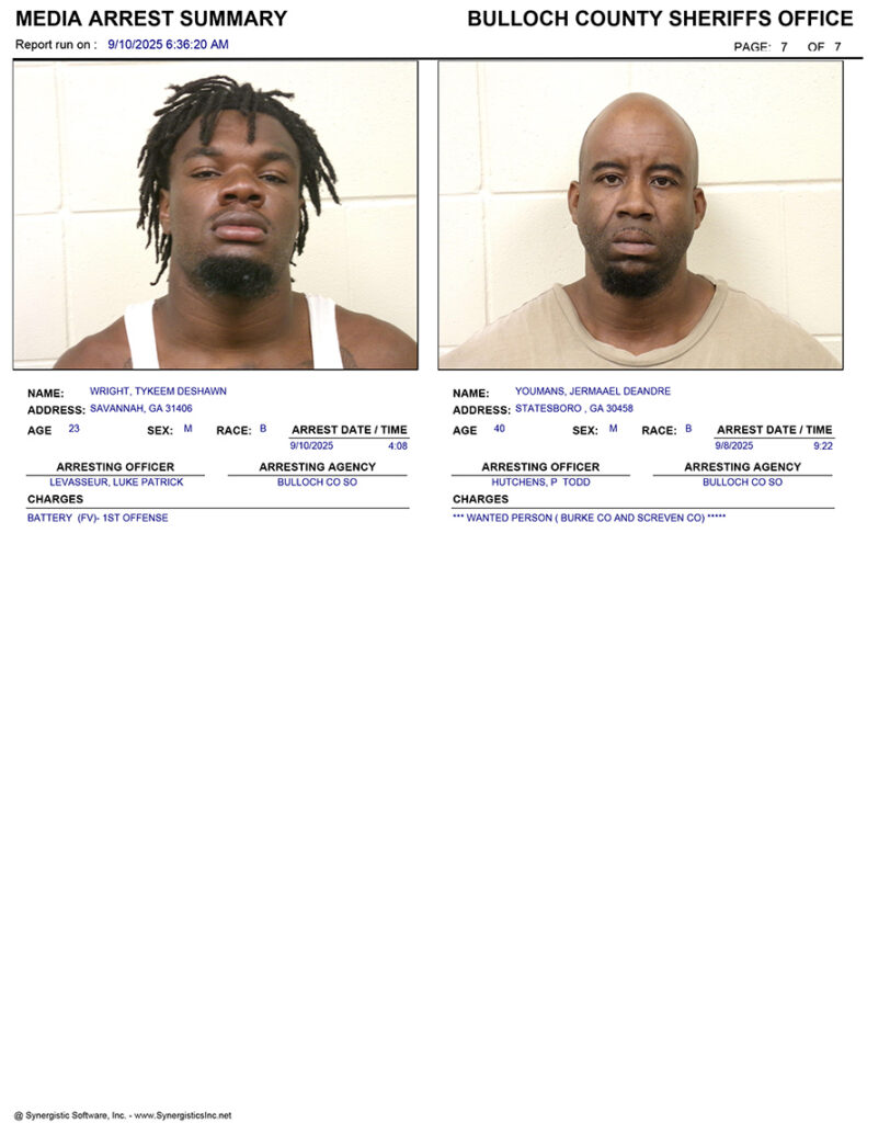 These records are matters of public information provided by the Bulloch County Sheriff’s Office. Booking reports are details of arrests only. All persons below are considered to be innocent unless proven otherwise in a court of law.