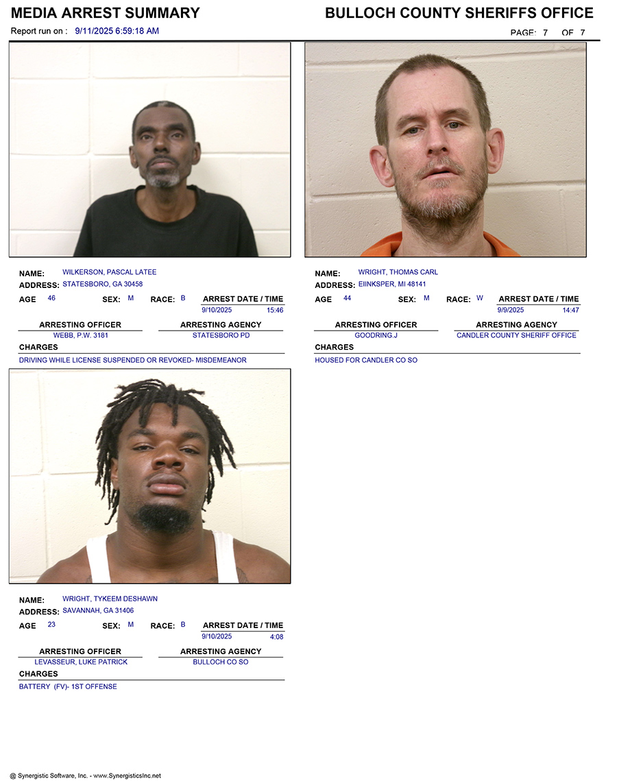 These records are matters of public information provided by the Bulloch County Sheriff’s Office. Booking reports are details of arrests only. All persons below are considered to be innocent unless proven otherwise in a court of law.