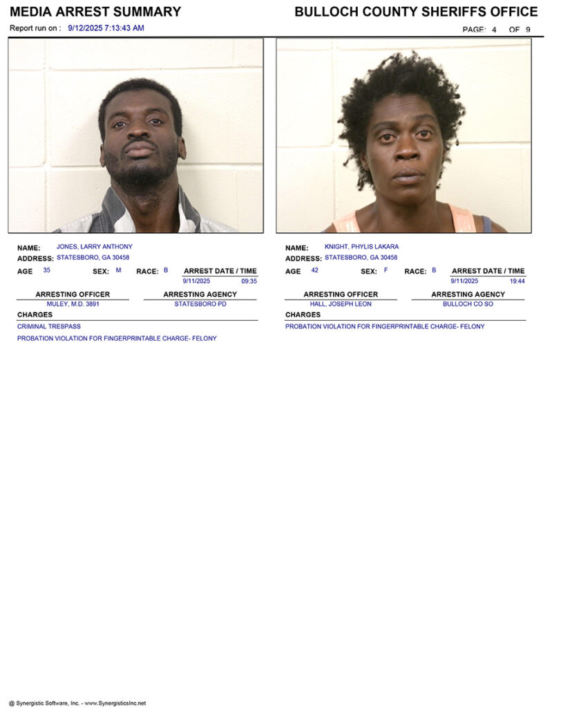 These records are matters of public information provided by the Bulloch County Sheriff’s Office. Booking reports are details of arrests only. All persons below are considered to be innocent unless proven otherwise in a court of law.
