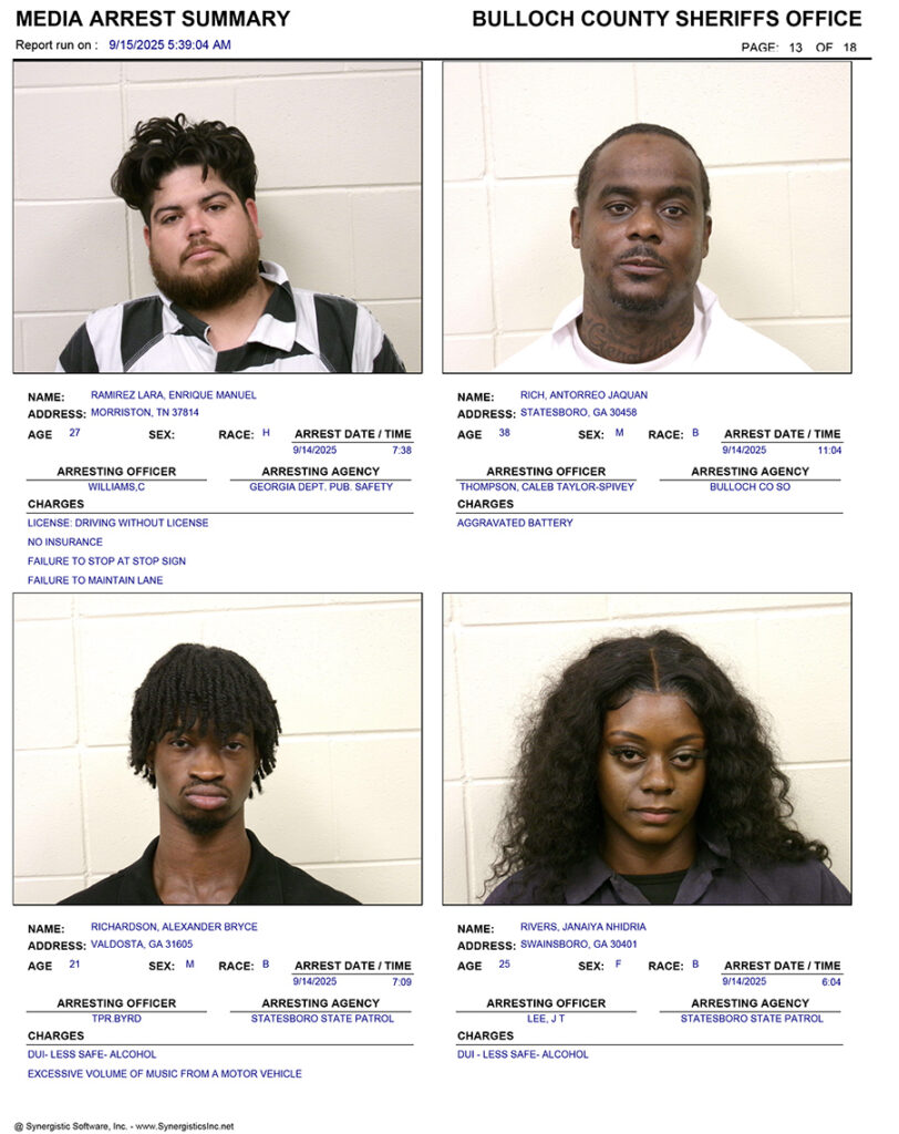 These records are matters of public information provided by the Bulloch County Sheriff’s Office. Booking reports are details of arrests only. All persons below are considered to be innocent unless proven otherwise in a court of law.