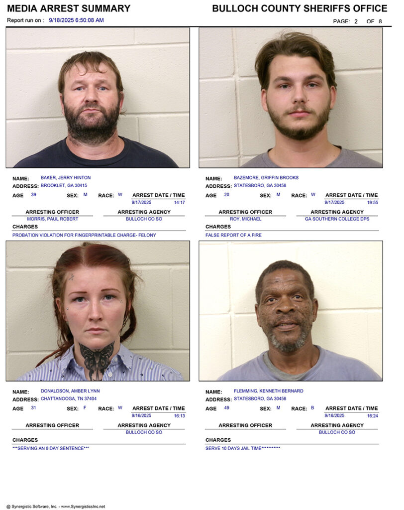 These records are matters of public information provided by the Bulloch County Sheriff’s Office. Booking reports are details of arrests only. All persons below are considered to be innocent unless proven otherwise in a court of law.