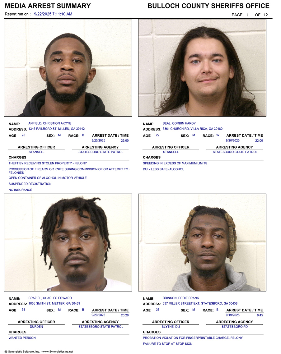 These records are matters of public information provided by the Bulloch County Sheriff’s Office. Booking reports are details of arrests only. All persons below are considered to be innocent unless proven otherwise in a court of law.