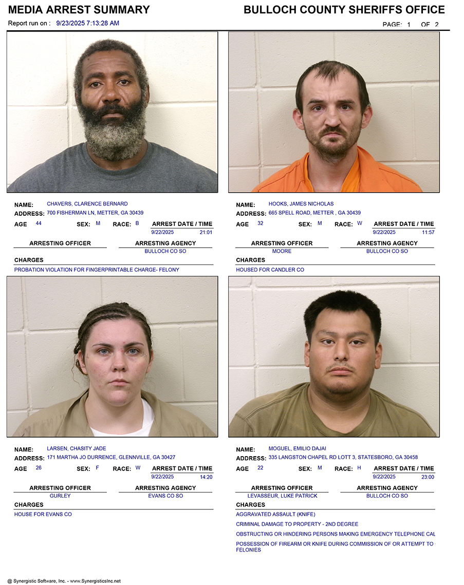 These records are matters of public information provided by the Bulloch County Sheriff’s Office. Booking reports are details of arrests only. All persons below are considered to be innocent unless proven otherwise in a court of law.