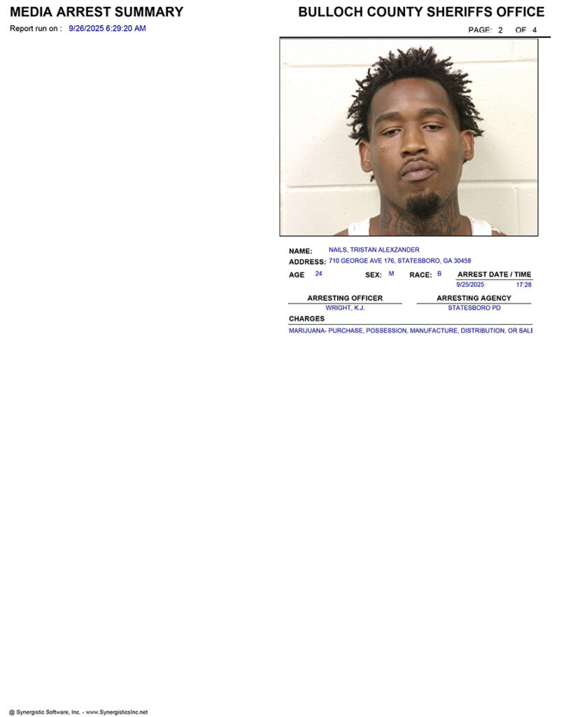 These records are matters of public information provided by the Bulloch County Sheriff’s Office. Booking reports are details of arrests only. All persons below are considered to be innocent unless proven otherwise in a court of law.