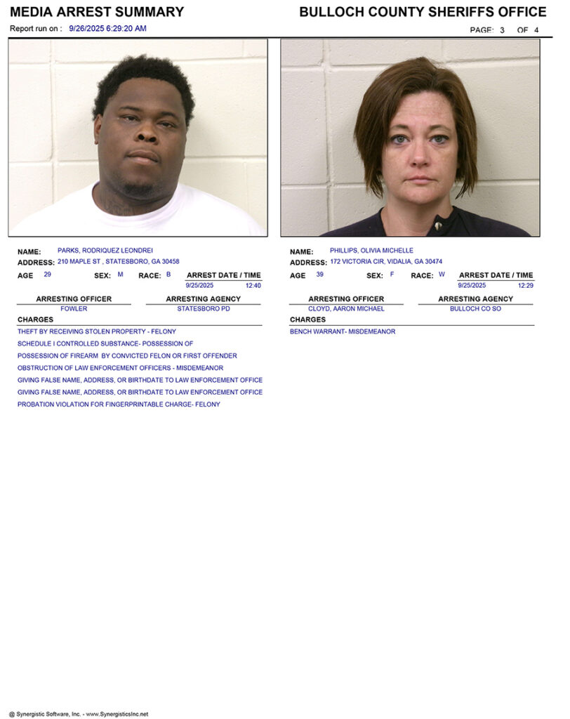 These records are matters of public information provided by the Bulloch County Sheriff’s Office. Booking reports are details of arrests only. All persons below are considered to be innocent unless proven otherwise in a court of law.