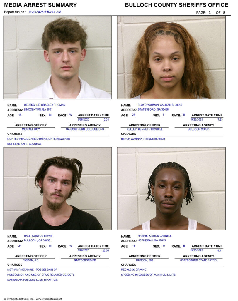 These records are matters of public information provided by the Bulloch County Sheriff’s Office. Booking reports are details of arrests only. All persons below are considered to be innocent unless proven otherwise in a court of law.