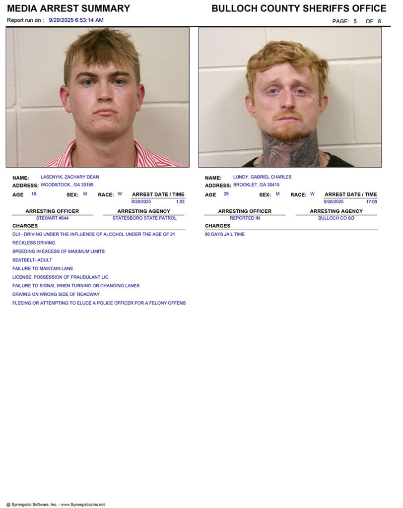 These records are matters of public information provided by the Bulloch County Sheriff’s Office. Booking reports are details of arrests only. All persons below are considered to be innocent unless proven otherwise in a court of law.