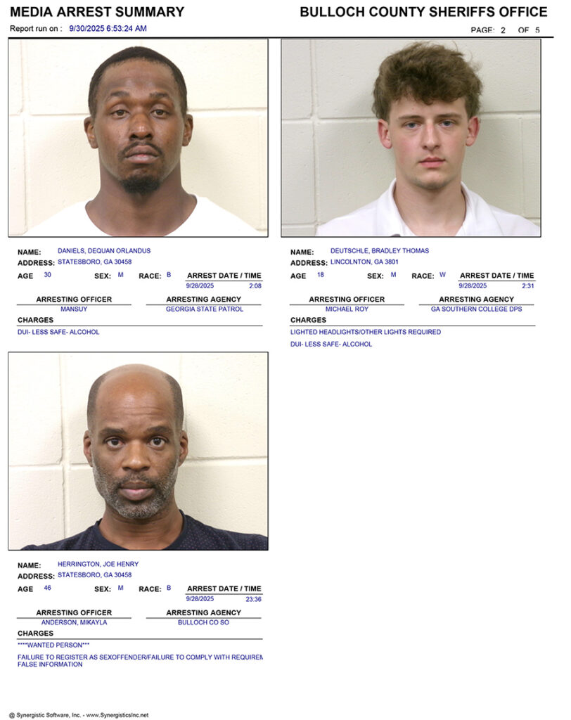 These records are matters of public information provided by the Bulloch County Sheriff’s Office. Booking reports are details of arrests only. All persons below are considered to be innocent unless proven otherwise in a court of law.