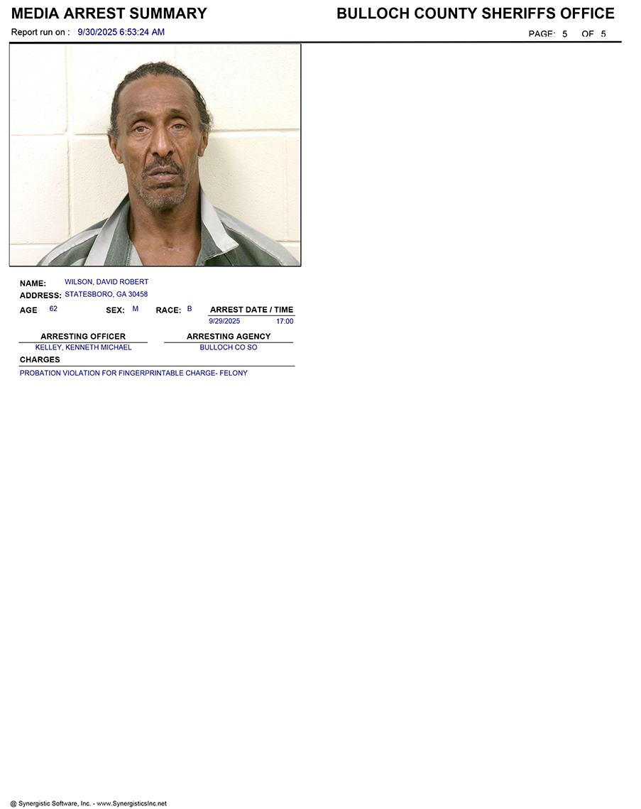 These records are matters of public information provided by the Bulloch County Sheriff’s Office. Booking reports are details of arrests only. All persons below are considered to be innocent unless proven otherwise in a court of law.