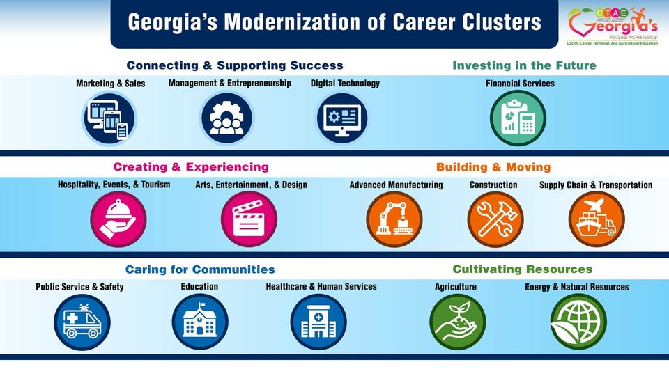Georgia is modernizing how career pathways are organized in schools, transitioning from 17 Career Clusters to 14 Career Clusters aligned with...