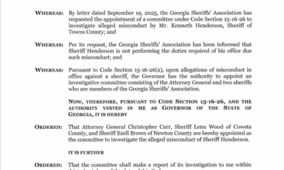 Governor Brian Kemp has issued an executive order appointing a special committee to investigate alleged misconduct by Towns County Sheriff Kenneth...