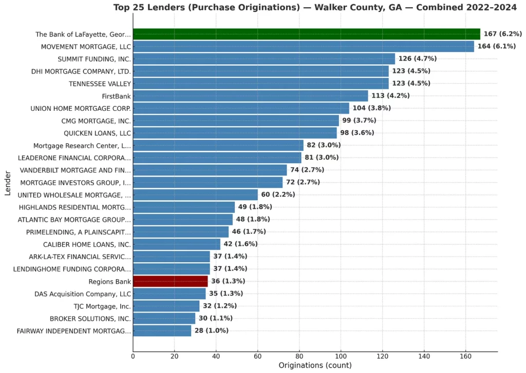 In June, Walker County commissioners took up a line item labeled “establish a secondary banking relationship.” It sounded harmless, bureaucratic—something about diversifying cash management, maybe signing a new certificate of deposit. What it didn’t say was that millions in public funds would leave the Bank of LaFayette, a 118-year-old local institution, and land at Regions Bank, a regional behemoth headquartered out of state with no branch or ATM in Walker County.