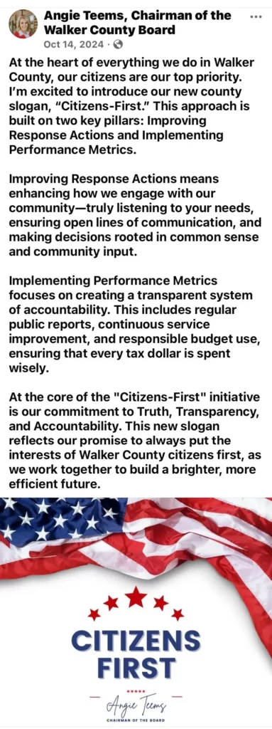 After two official statements in less than five days, Walker County citizens still have zero records or documents to prove any of Chairwoman Teems’ claims…