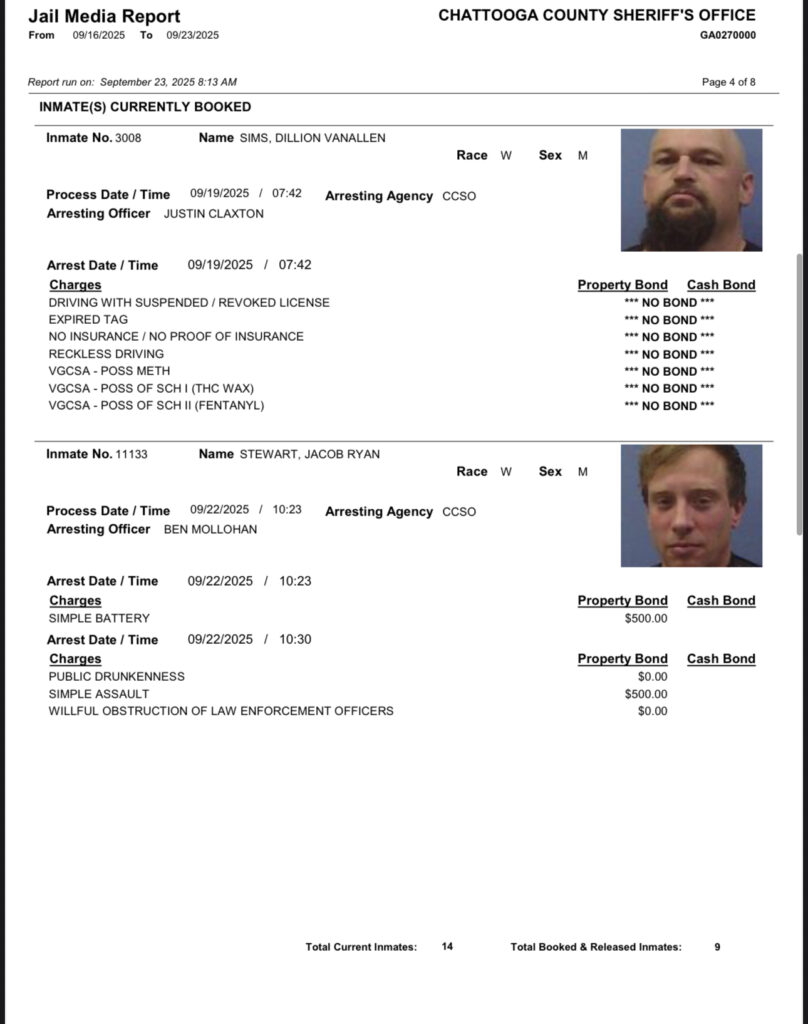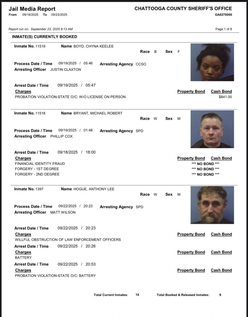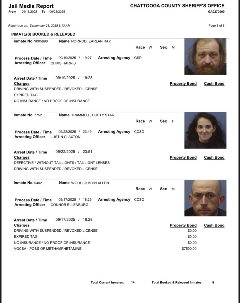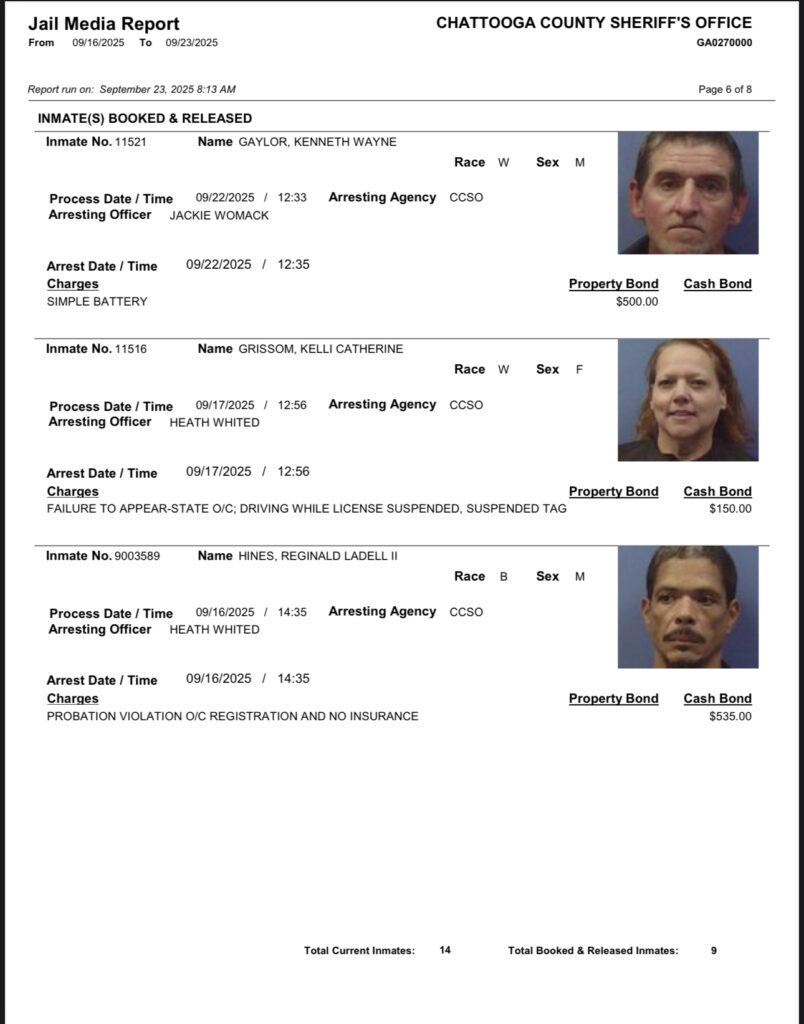 These records are matters of public information provided by the Chattooga County Sheriff’s Office. Booking reports are details of arrests only. All persons below are considered to be innocent unless proven otherwise in a court of law.