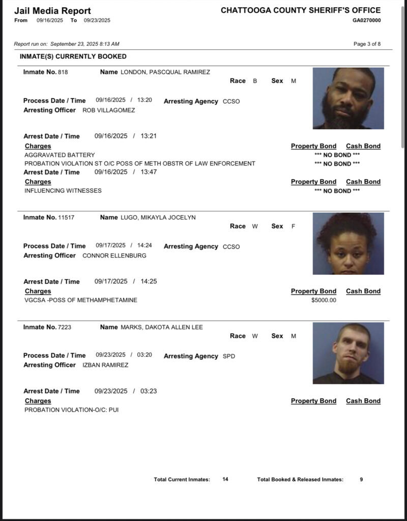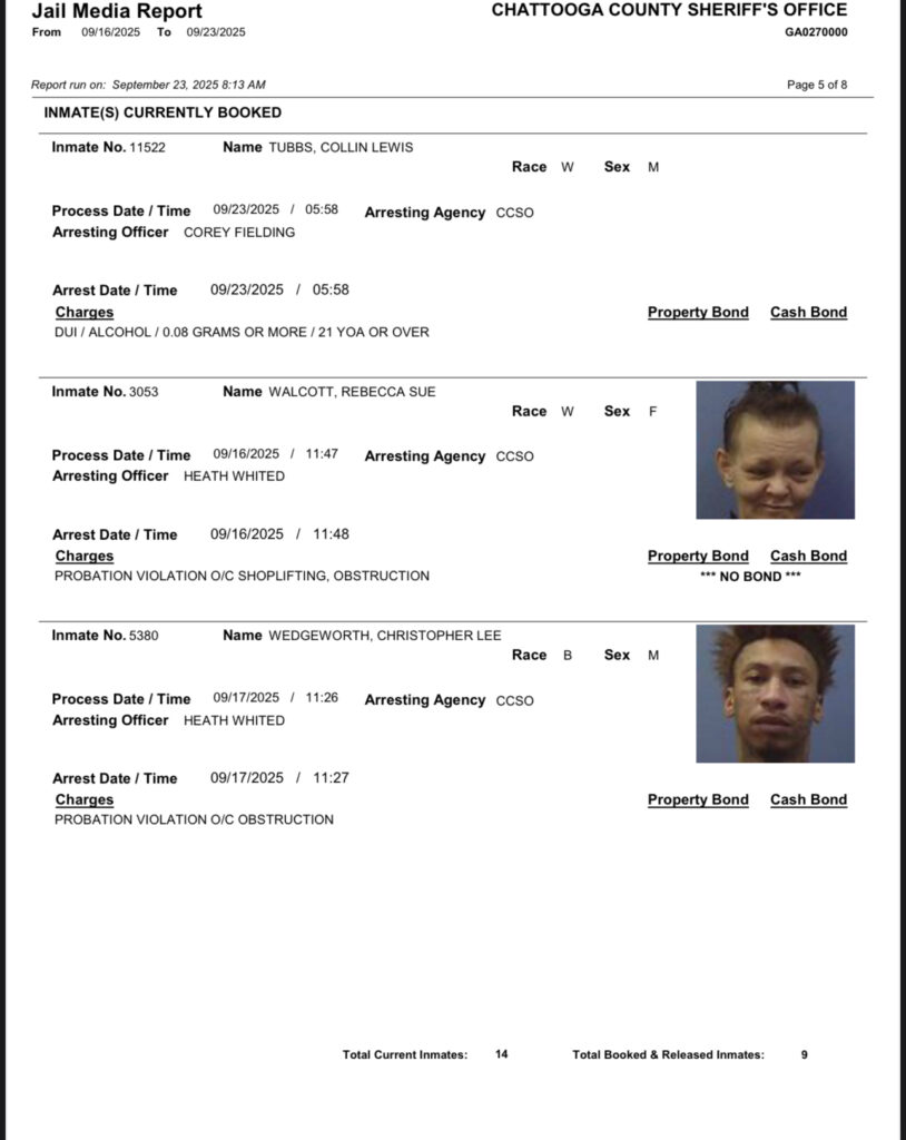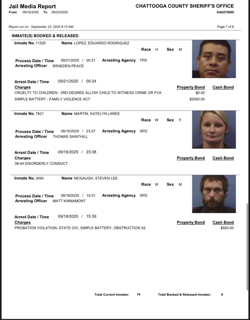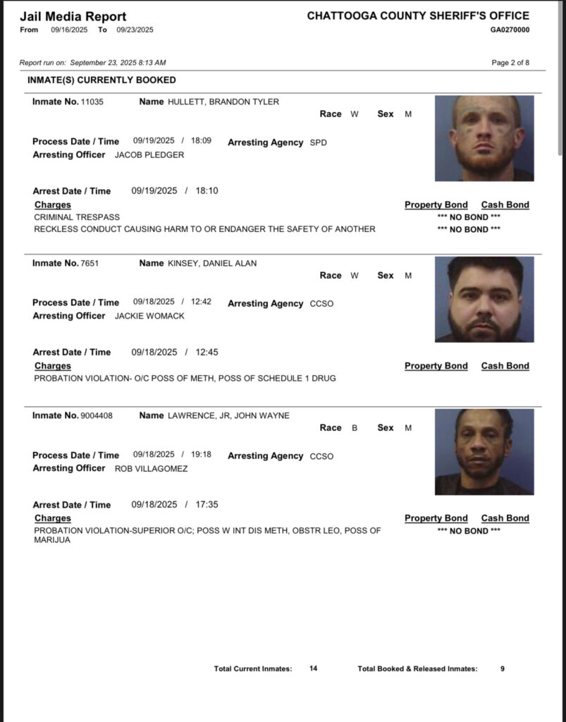 These records are matters of public information provided by the Chattooga County Sheriff’s Office. Booking reports are details of arrests only. All persons below are considered to be innocent unless proven otherwise in a court of law.