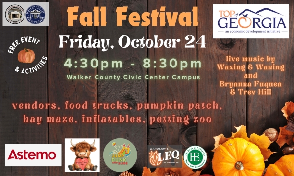 The Walker County Civic Center will play host to a free Fall Festival on Friday, October 24 from 4:30 p.m. to 8:30 p.m. on the Civic Center Campus, 10052 Highway 27 in Rock Spring.