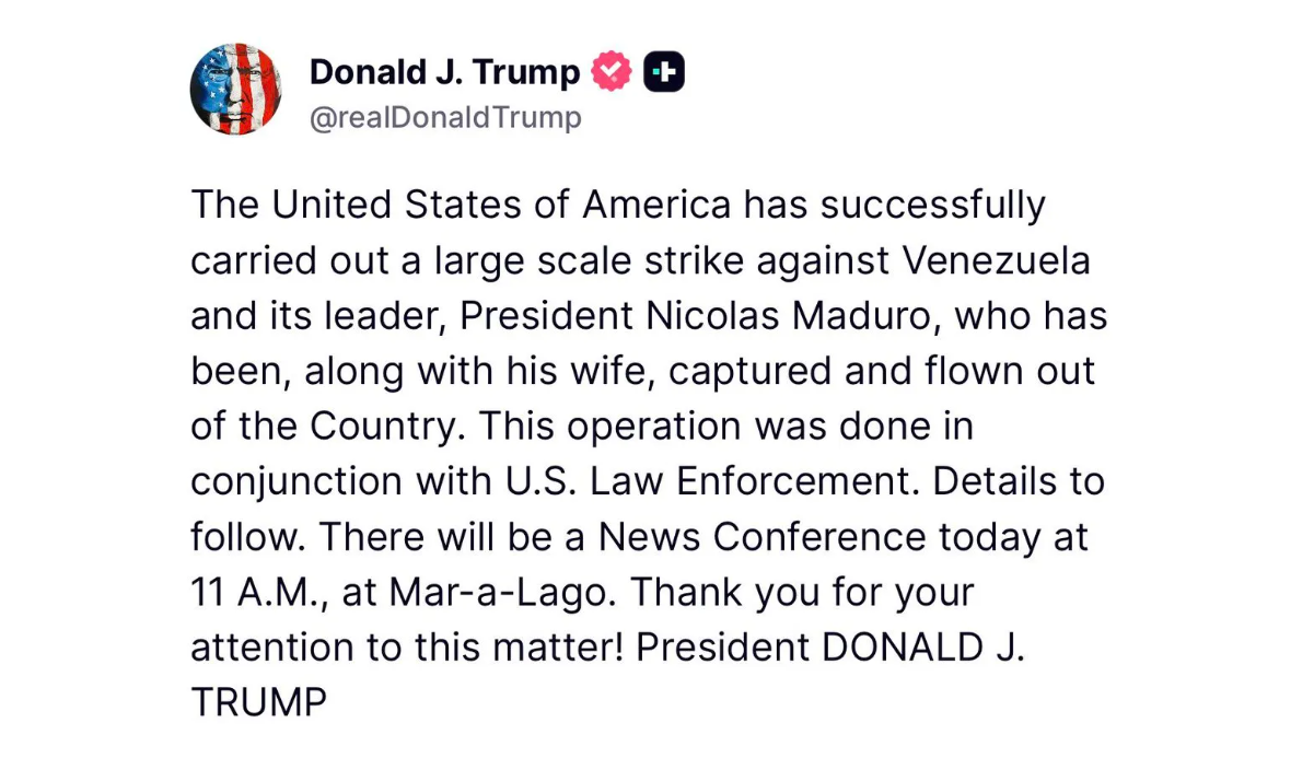 Read more here: Trump Announces U.S. Military’s Capture of Maduro > U.S. Department of War > Defense Department News | U.S. Department of War