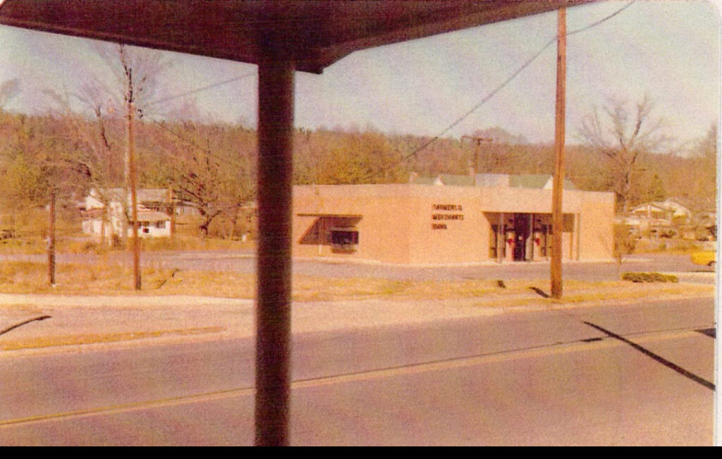 The brick Farmers and Merchants Bank opened in October 1973 in the same location as the original Bank of Lyerly wood building.