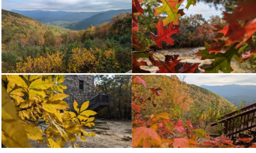 Poplar has shifted to a bright yellow, and hickory is surprisingly vivid. Sourwood is displaying predominately red and maroon hues, while blackgum is also vibrant with reds, yellows, and oranges. These species are near their peak, and their vibrancy may begin to dull over the following week. Maples are in an earlier stage of their transition. Many are still green, while others are just beginning to shift into their characteristic red, yellow, or orange.