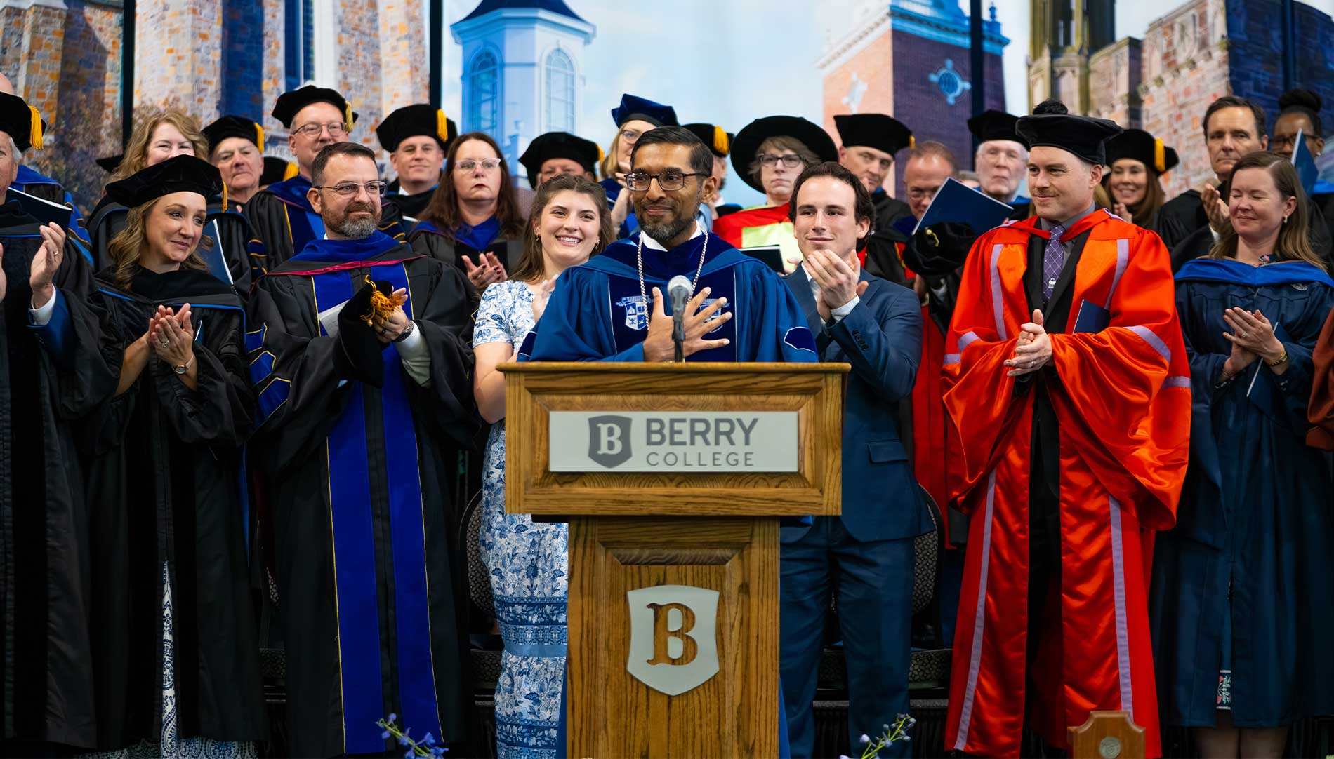 “As we stand here at this moment in Berry’s story, we’re reminded that we do not inherit something completed; we inherit a calling, a challenge to which we rise each day,” Mazumder said. “We seek solutions, wrestle with ideas, shape our character, practice our craft, pursue clarity and truth, lead with integrity, serve with humility and dream boldly about what Berry can become for the next generation. It’s a torch passed to us, a symbol of what has come before and what will endure.”