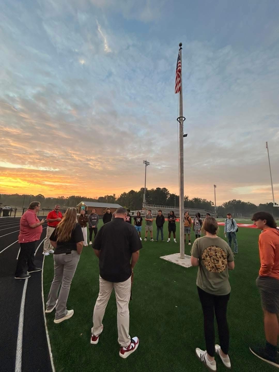 On Wednesday, September 24, Chattooga High School’s FCA members held their annual “See You At the Pole”, an event where they met up at the flag pole in Little Big Horn Stadium before school. This meeting took place around 7:20 am, and there was a good turnout of students and teachers. When the students first arrived, there was worship music playing and an opportunity for them to talk with each other. Pastor Phil Minter from Trion Harvest Worship Center came and delivered a great message to our students and staff about the importance of showing Jesus to the people around you. He talked about being the change you want to see and being a light for others. Hannah Hasty, one of the students who attended this event, said, “I thought it was a great way to spread the gospel to people that might not hear it otherwise! That might be the only Jesus some people ever hear. All the teachers there were so kind and helpful, and the pastor spoke a great message.”