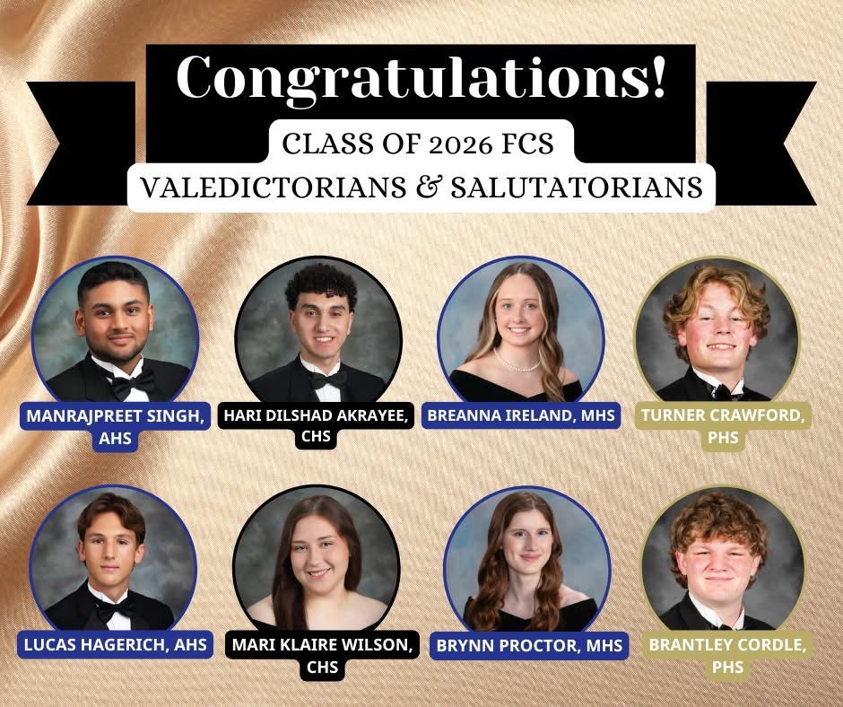 Floyd County Schools is excited to announce the Valedictorians and Salutatorians for the Class of 2026. A huge congratulations to these students!